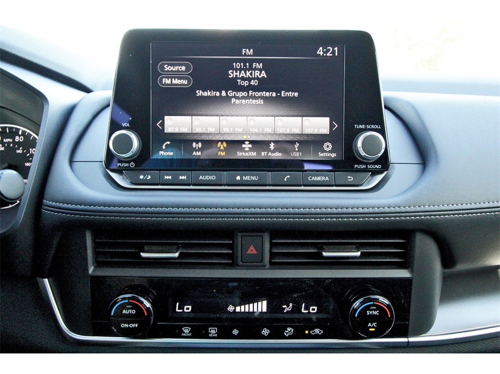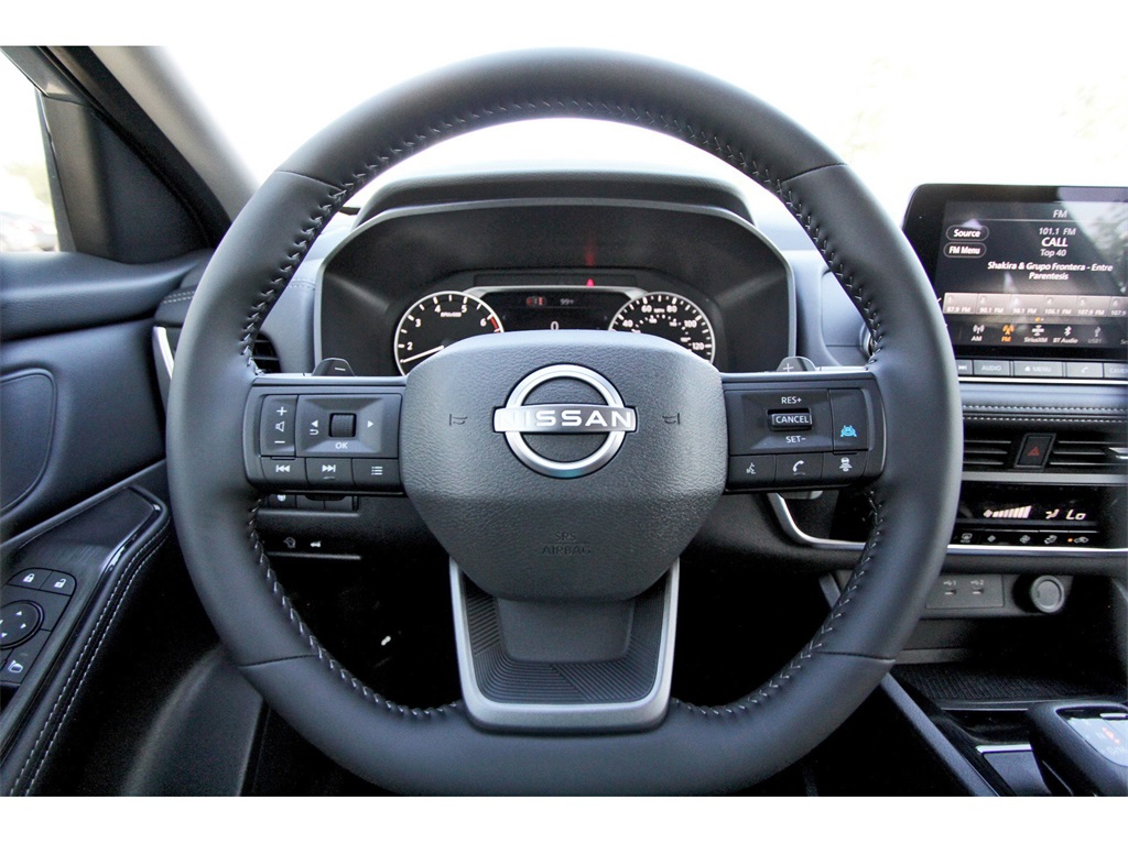 s, Driver door bin, Driver vanity mirror, Dual front impact airbags, Dual front side impact airbags, Electronic Stability Control, Emergency communication system: NissanConnect Services, First Aid Kit, Floor Mats w/1-Piece Cargo Area Protector, Four wheel independent suspension, Frameless Rearview Mirror w/Universal Remote, Front anti-roll bar, Front Bucket Seats, Front Center Armrest, Front dual zone A/C, Front reading lights, Fully automatic headlights, Heated door mirrors, Illuminated entry, Knee airbag, Low tire pressure warning, Occupant sensing airbag, Outside temperature display, Overhead airbag, Overhead console, Panic alarm, Passenger door bin, Passenger vanity mirror, Power door mirrors, Power driver seat, Power Liftgate, Power steering, Power windows, Radio data system, Radio: AM/FM NissanConnect, Rear anti-roll bar, Rear seat center armrest, Rear side impact airbag, Rear window defroster, Rear window wiper, Remote keyless entry, Speed control, Speed-sensing steering, Speed-Sensitive Wipers, Split folding rear seat, Spoiler, Steering wheel mounted audio controls, Tachometer, Telescoping steering wheel, Tilt steering wheel, Traction control, Trip computer, USB Charging Cable Set, Variably intermittent wipers, and Wheels: 18" Dark Painted Machine Finished Alloy!!